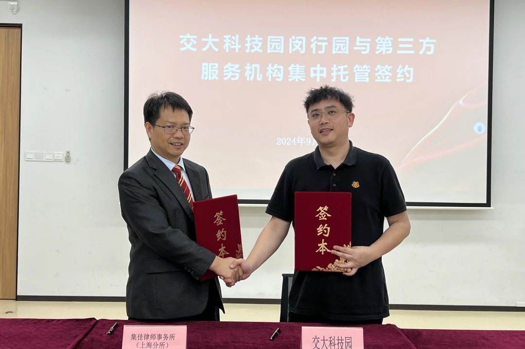 为助力企业科技创新和经济发展护航保障,提供高质量维权公益援助,会上举行了“上海市开发区协会维权援助工作站交大科技园闵行园工作室”揭牌仪式,交大科技园闵行园与多多28上海分所进行了托管签约。
